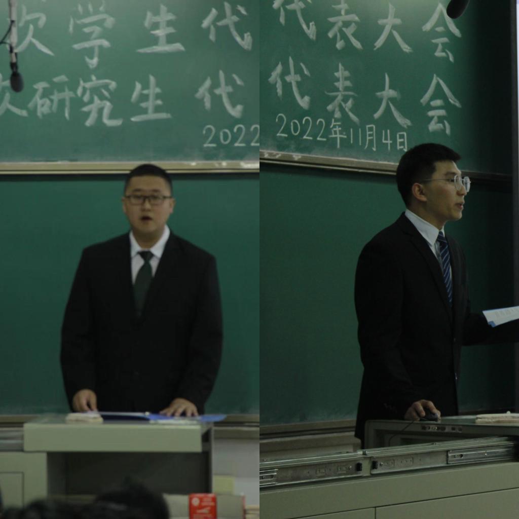 大会第二项,石树恒代表学生会主席团、王园昊代表研究生分会主席团分别做工作报告并提请审议,总结成绩,指出不足,为一年的工作划上圆满的句号。