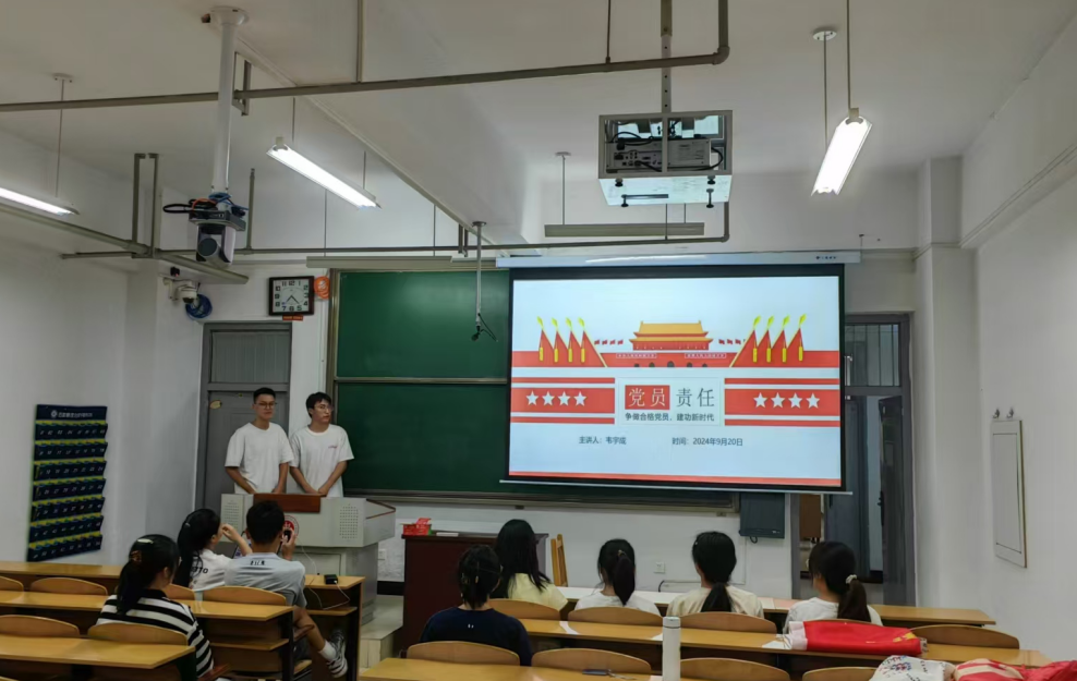 2024年9月20日,管理学学生第二党支部在15104教室开展学习活动:党员讲党课——《争做合格党员,建功新时代》。本次党课由韦宇成同志主讲,支部全体党员参加。