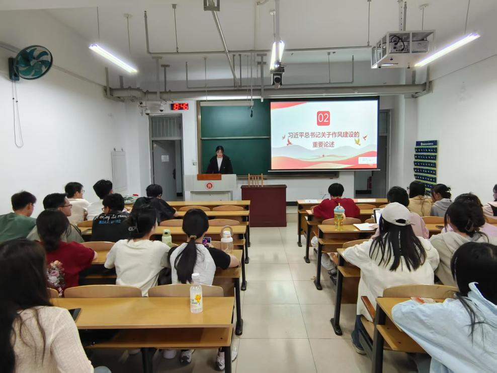2025年4月17日晚上7点,经济学学生党支部在15103成功举办了党员讲党课活动。本次党课由孙宝洋同志主讲,主题为《学论述强作风,守初心担使命——新时代党员作风提升行动》。