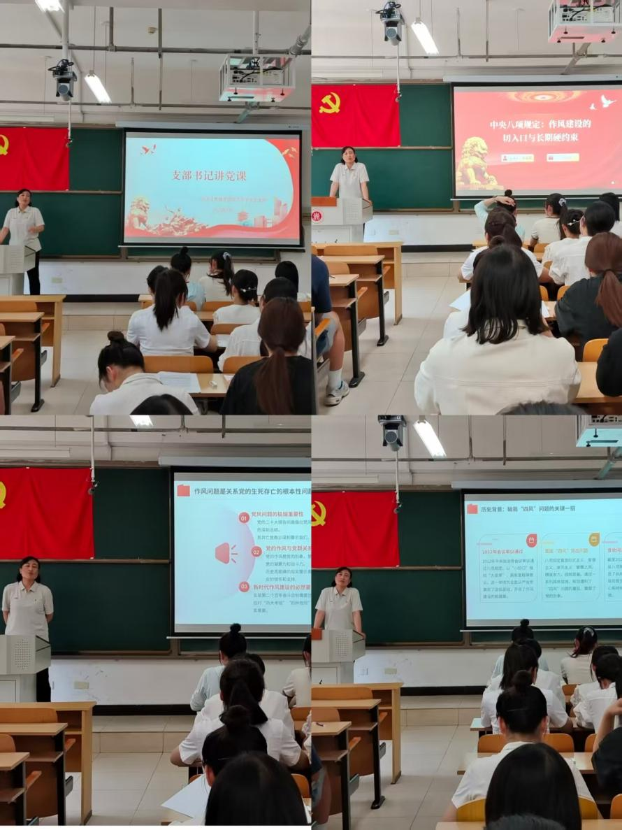 6月12日下午四点半,经济学学生党支部在15201教室组织开展专题党课学习,支部书记李爱霞同志以“中央八项规定:作风建设的切入口与长期硬约束”为主题,为全体党员进行了深入讲解。