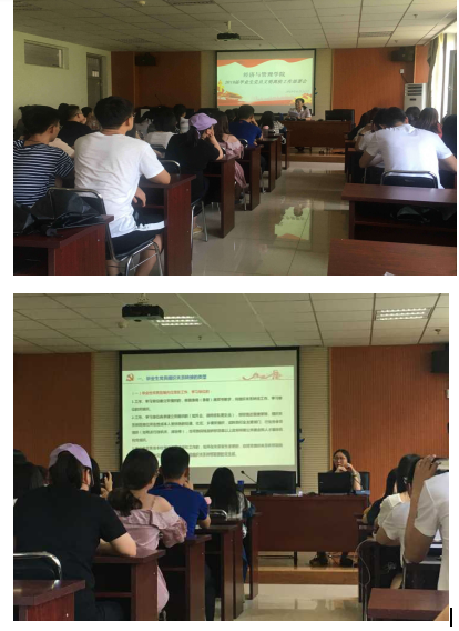 2019年6月14日下午4:30,经济与管理学院召开2019届毕业生党员文明离校工作布置会。党建负责人叶甜甜老师、学生党支部书记李爱霞主持,全体学生党员参会。