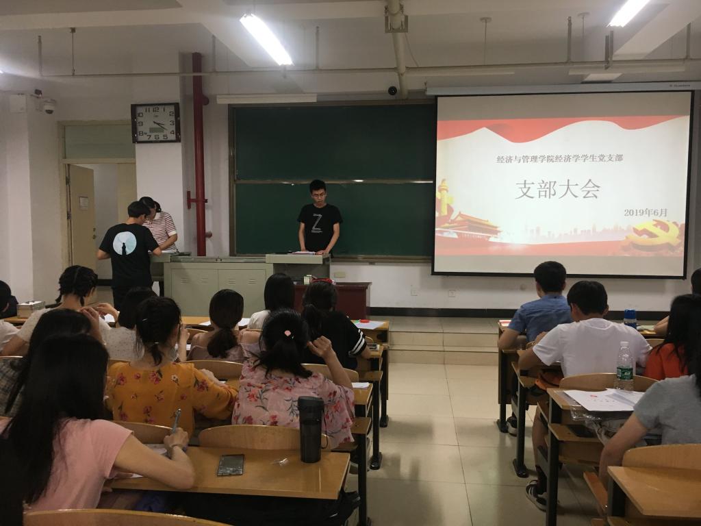 2019年6月14日下午2点:30在15106教室,经济学学生党支部召开本学期的党支部大会。会议由党支部书记李爱霞老师主持召开,全体党员和重点发展对象参加本次会议。