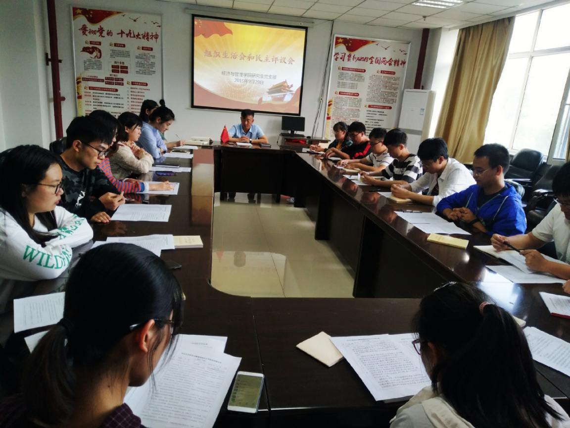 9月29日下午4时,经济与管理学院研究生党支部于15号楼308党员之家召开组织生活会和民主评议会。会议由支部书记屈有明老师主持,正式党员、预备党员共计21人参加。
