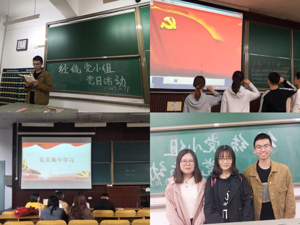 2019.10.17,经济学学生党支部以党小组为单位开展以红色革命为主题的党日活动,各党小组重温了入党誓词、进行了集中学习。