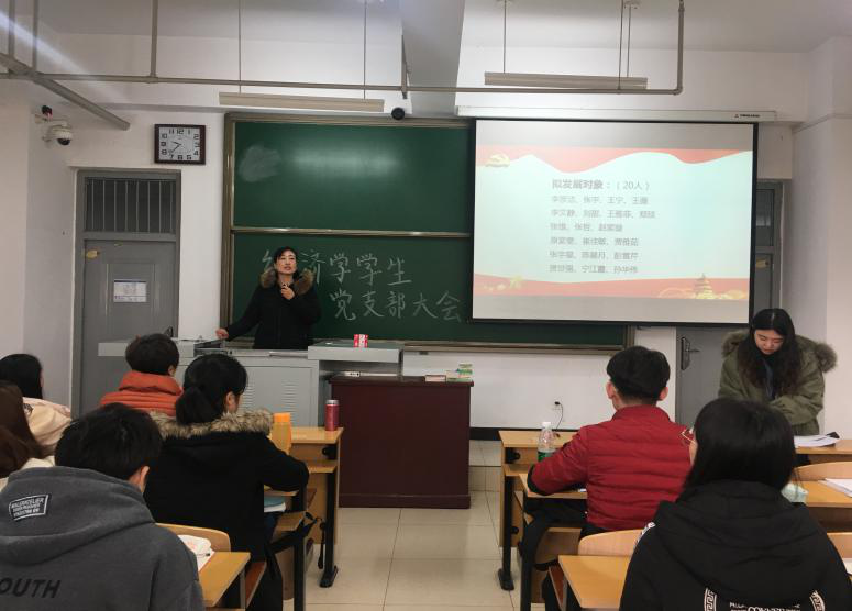 会议伊始,由李爱霞同志介绍本次大会的主要内容并宣布会议开始。根据大会议程,会议首先由发展对象依次宣读入党志愿,汇报自己对党的认识,陈述入党动机及自身表现,主要优缺点及需向党组织说明的有关问题。随后由入党介绍人根据发展对象的了解,分别总结各位发展对象的表现,说明对申请人的介绍理由和考察情况,表明了自己的意见。最后经支部党员充分讨论,以正式党员无记名投票方式对发展对象进行逐个投票表决并逐一公布投票结果,李彦洁等20名发展对象得到支部大会的一致认可,经济学学生党支部决定正式接收他们为中共预备党员。