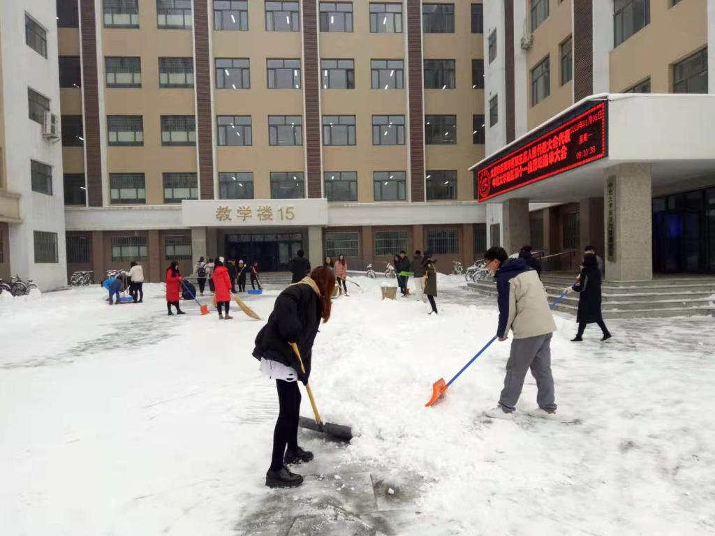 党员同志们拿起扫把、铁锹等除雪工具,在学院楼门前等地进行集中清扫。党员同志齐心协力、配合默契,干得热火朝天,并吸引了热心群众的加入。大家共同努力,仅耗时1小时就将路面和路边的积雪全部清扫干净,有效的缓解了积雪对师生们出行的影响,更展现出党员们敢于吃苦、乐于奉献的精神,用自己的行动为整洁的校园环境贡献出自己的一份力,同学们也在此次扫雪活动中得到了锻炼。
