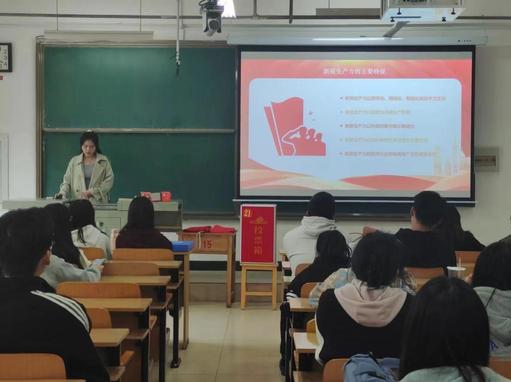 2024年3月26日下午2点,管理学学生党支部开展党员讲党课系列活动2024年度第二讲:《两会热词,新质生产力》。活动由何欣怡同志分享,全体支部党员参与。