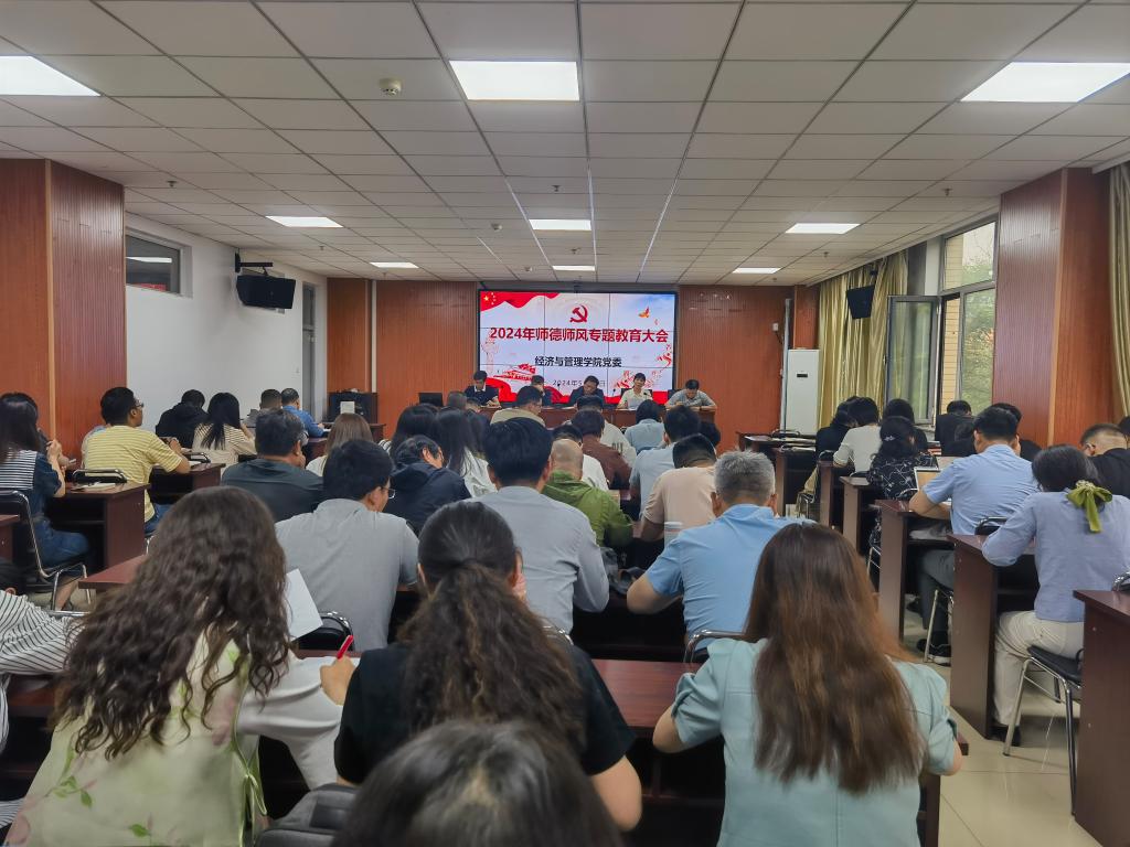 为深入学习贯彻党的二十大精神,全面落实学校关于加强和改进新时代师德师风建设的相关工作要求,进一步加强全院教师的师德师风建设,营造学院风清气正的良好教书育人环境。同时,也对学院意识形态工作进行科学研判,进一步压实意识形态工作责任制。经济与管理学院于5月14日下午,在学院301会议室召开学院师德师风专题教育大会暨意识形态工作研判会议,会议由学院党委书记杜苇同志主持,学院全体教师参加了本次会议。