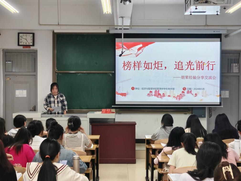 为促进支部党员同志的学习经验分享交流,5月14日下午,管理学学生党支部组织开展“榜样如炬,追光前行”主题党日活动。活动由闫晶同志主持,全体支部党员参与。