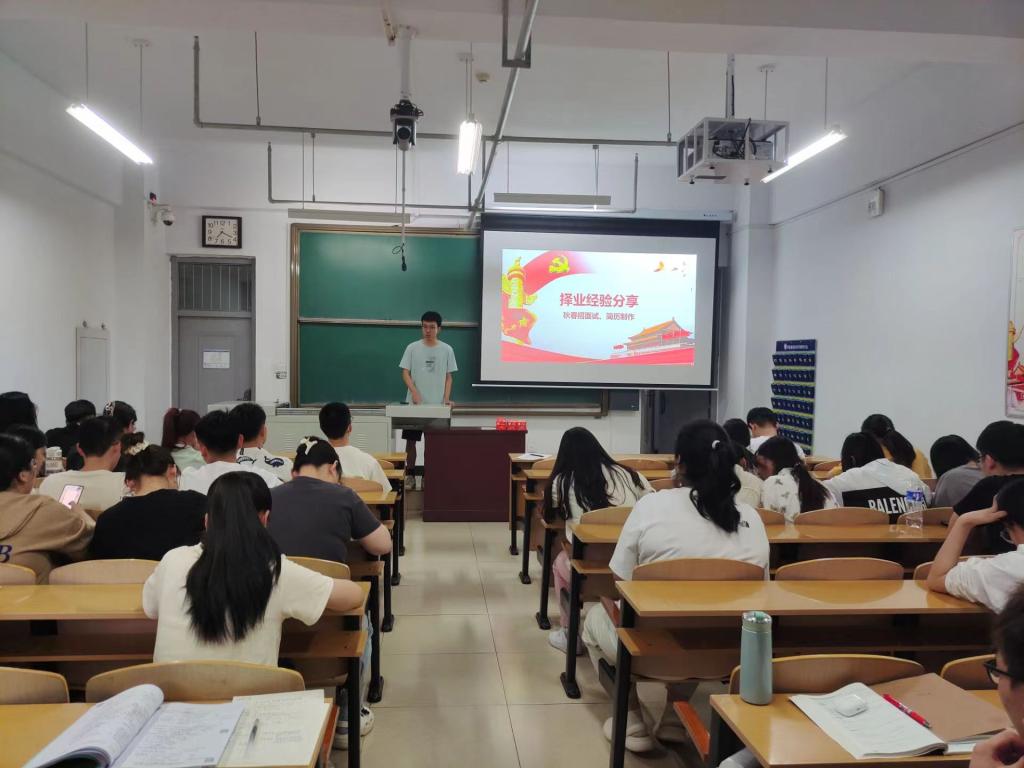 本次活动首先由考研成功的党员同志介绍择校和复试面试技巧,分享有关考研的经验和建议。随后已经签约就业单位的党员分享了应聘过程中面试和简历制作的经验,介绍自己在求职过程中遇到的挑战和成功经验。交流环节,分享者就与会党员们提出的问题进行了详细的解答,促进了互动和交流,深化了同学们对就业和考研等问题的理解。
