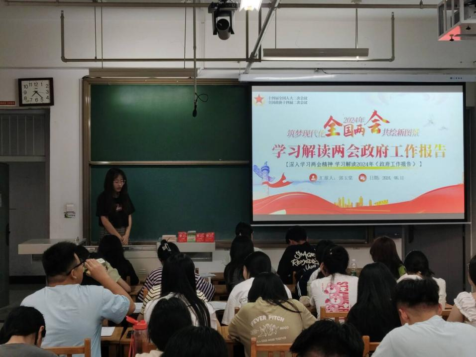 2024年6月11日晚七点,管理学学生党支部组织开展了党员讲党课系列活动2024年度第四讲:《学习解读两会政府工作报告》。活动由郭玉棠同志和李可欣同志主讲,全体支部党员参会。