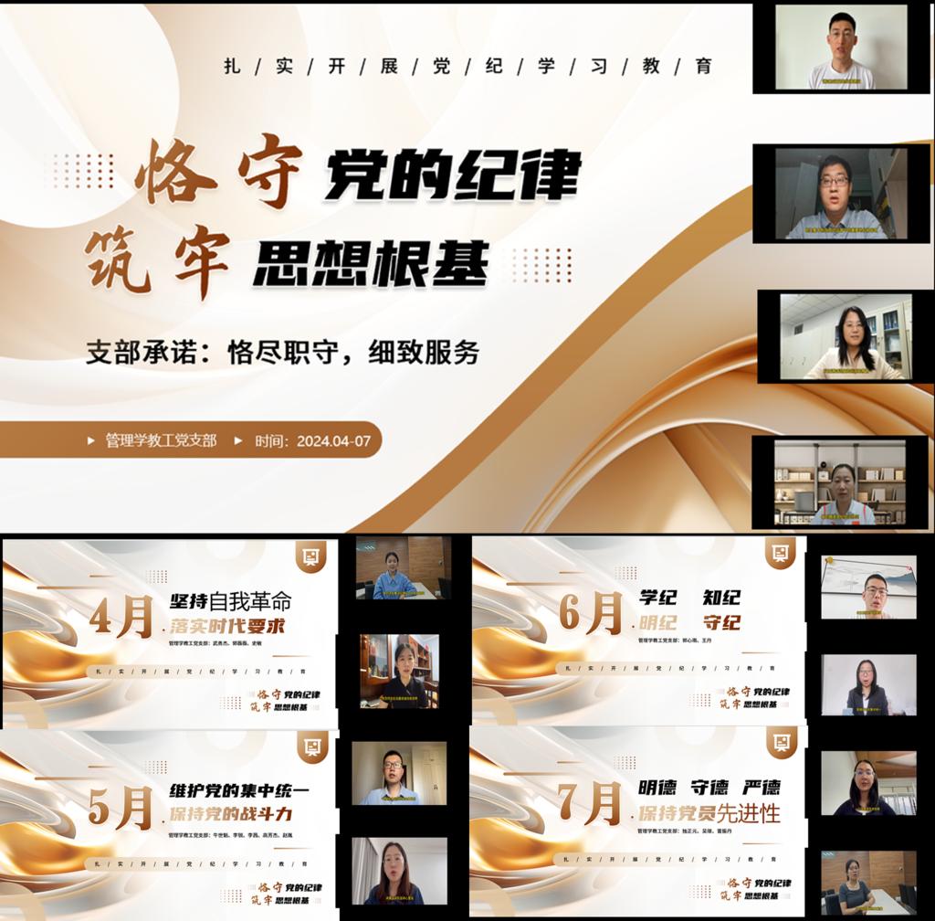 支部书记武勇杰组织观看了支部自制微党课《恪守党的纪律 筑牢思想根基》和2024年高校党组织示范微党课《中华传统廉洁文化》中“中华传统诗词中的廉洁思想”部分内容,深入复习,巩固党纪学习教育成果。