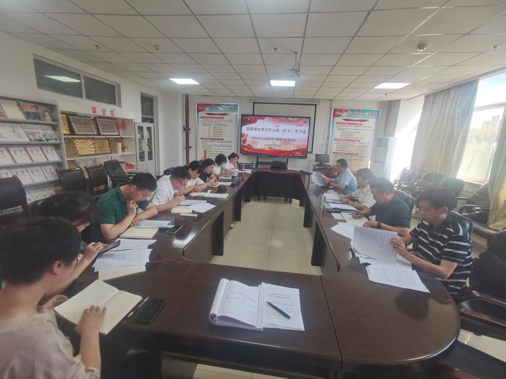 9月19日下午,经济与管理学院党委在逸夫楼南楼308会议室召开院党委理论学习中心组(扩大)学习会,学院党委委员、领导班子及各支部书记参加了本次学习会,会议由院党委书记杜苇同志主持。会议专题学习了习近平总书记近期重要文章和重要讲话精神,学习了党的二十届三中全会精神,并对党纪学习教育进行了全面复盘总结。