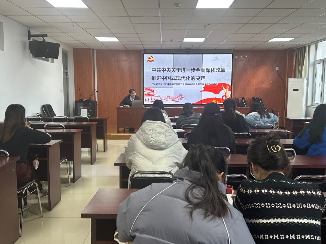 买璐璐同志领学了《中共中央关于进一步全面深化改革、推进中国式现代化的决定》,围绕党的二十届三中全会的重要精神,深入讲解了改革开放在中国式现代化进程中的关键作用,以及进一步全面深化改革的总目标。她重点阐述了构建高水平社会主义市场经济体制、健全推动经济高质量发展体制机制、完善城乡融合发展体制机制等多个方面的内容,并特别强调了新时代党员干部要在改革攻坚中展现责任与担当。