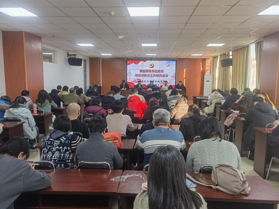 为深入学习贯彻党的二十大、党的二十届三中全会精神,全面落实学校关于加强和改进新时代师德师风建设的相关工作要求,进一步加强全院教师的师德师风建设,营造学院风清气正的良好教书育人环境。同时,临近假期,也对学院意识形态工作进行安排部署,进一步压实意识形态工作责任制。经济与管理学院于1月7日下午,在学院301会议室召开学院师德师风专题教育大会暨意识形态工作研判会议,学院党委书记杜苇、院长赵公民、党委副书记屈有明、副院长彭佑元、副院长张克勇及全体教师参加了本次会议。会议由学院党委书记杜苇同志主持。