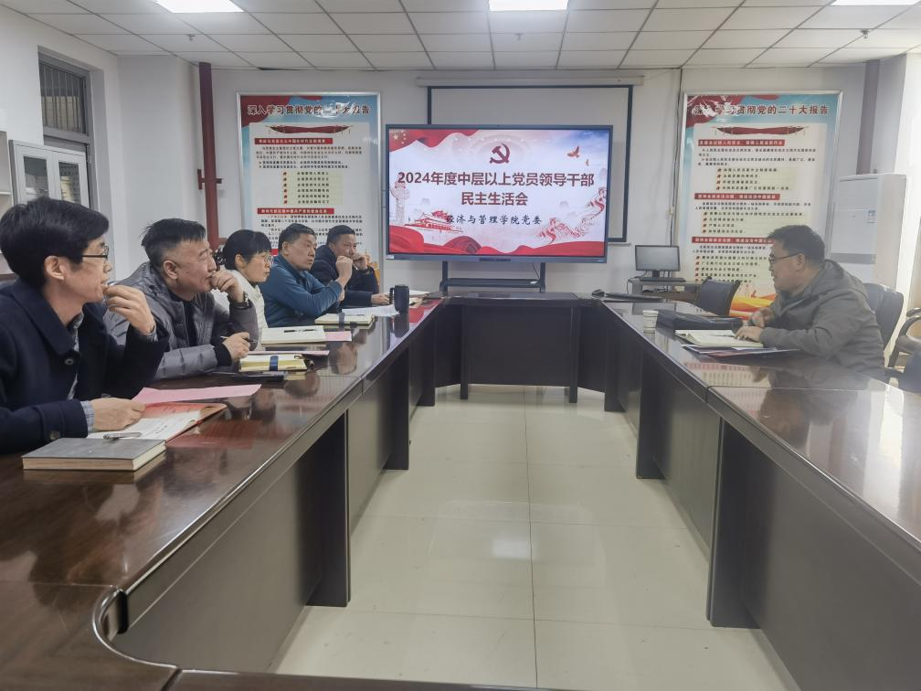 为进一步深入学习贯彻党的二十届三中全会精神、巩固深化党纪学习教育成果的重要举措,持续发扬党内民主、加强党内监督、提高领导班子解决矛盾和问题的能力,经济与管理学院于2月25日下午于逸夫楼南楼308会议室召开2024年度中层以上党员领导干部民主生活会,学院全体党员领导干部参加会议,副院长张克勇同志列席,联系校领导尹建平副校长到会指导,杜苇同志主持本次会议。