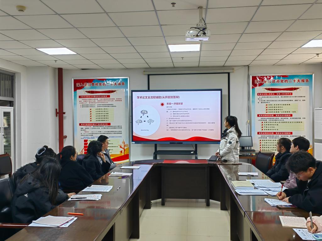 活动伊始,孟悦同志深入浅出地介绍了DeepSeek。它是一款具备强大自然语言处理能力的人工智能模型,可以在新闻报道、学术论文、商业策划和创意写作方面提供思路与素材。在学习场景里,DeepSeek能帮助梳理知识体系;进行课题研究时,协助检索和分析相关文献,提升学习效率。随后,党员们围绕DeepSeek在工作与学习中的应用展开热烈讨论。部分党员分享了使用DeepSeek帮助自己学习专业知识的经验,还有党员提到在进行学生会和社团活动时,借助DeepSeek生成生动有趣的宣传文案,能更好地吸引大家关注。