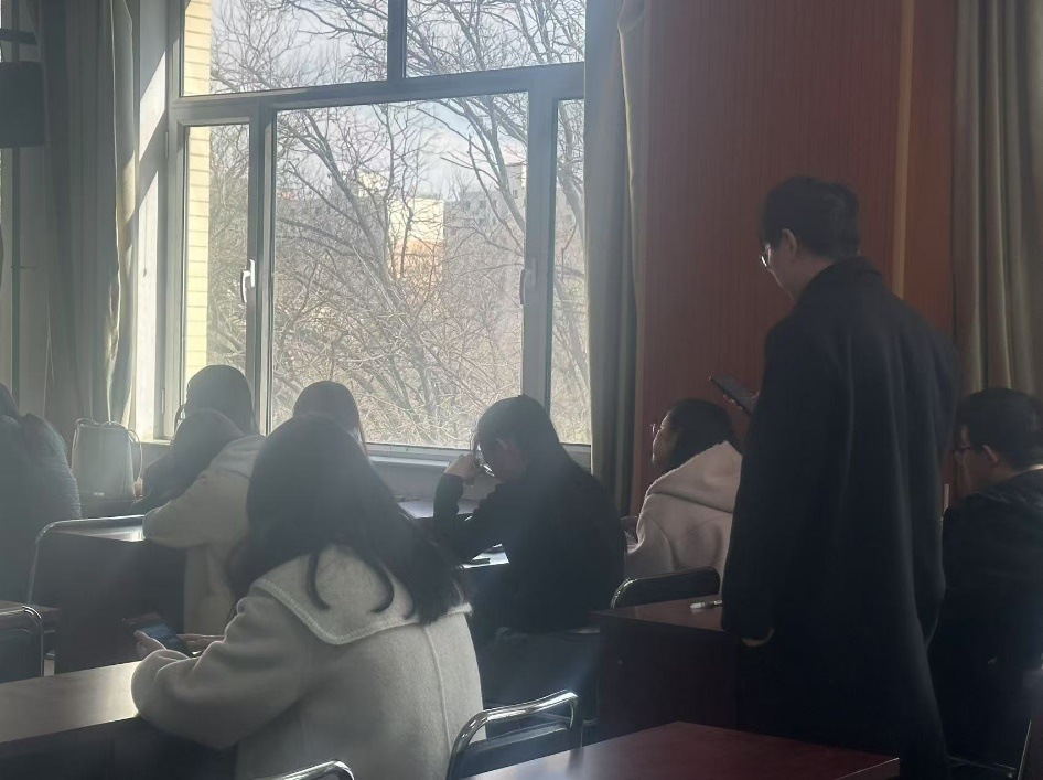 为深入学习贯彻全国两会精神,更好地理解政府工作报告,2025年3月28日下午三点,经济与管理学院研究生第一党支部集体于院楼301以及腾讯会议线上线下相结合开展“解读政府工作报告,关注国家时政与专业发展”主题党日活动,活动由党支部书记买璐璐同志主持,党支部全体党员参加。