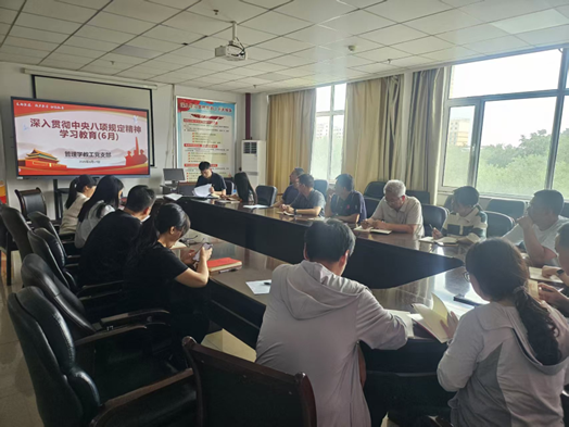 2025年6月17日下午,管理学教工党支部召开了以“深入贯彻中央八项规定精神学习教育”为主题的6月主题党日活动。此次活动旨在进一步加强党员的作风建设,提升党组织的凝聚力和战斗力。支部书记武勇杰主持会议,管理学教工党支部全体党员参加。