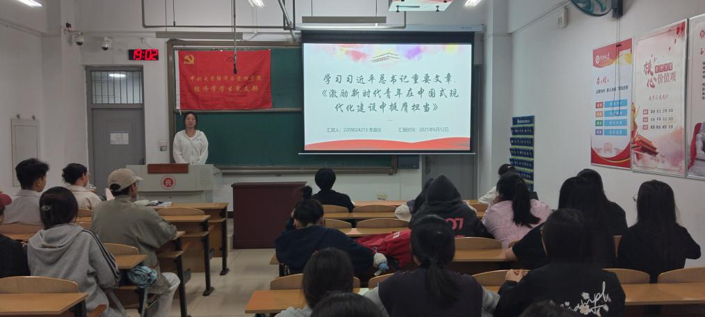 6月10日下午3点,经济学学生党支部在15201教室成功举办了党员讲党课活动。本次党课由李嘉怡同志主讲,主题为《激励新时代青年在中国式现代化建设中挺膺担当》。