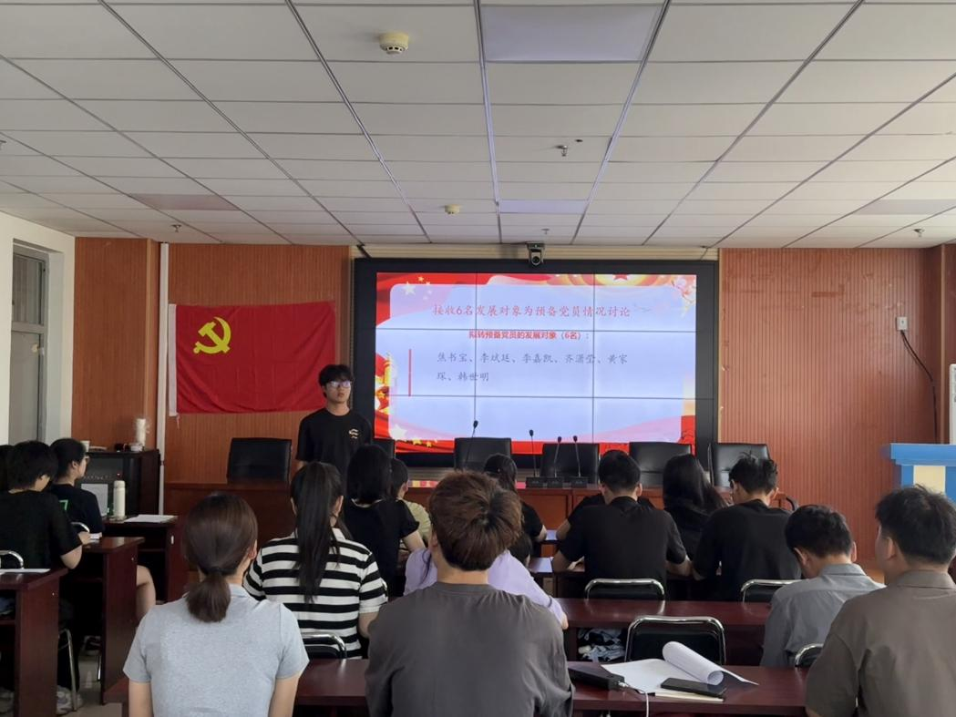 2025年6月14日上午,中北大学经济与管理学院管理学学生第二党支部在院楼301会议室召开了接收预备党员以及预备党员转正大会。大会讨论了焦书宝等6位同志的入党事宜以及戴欣怡等4位同志的转正事宜,支部全体党员参加。