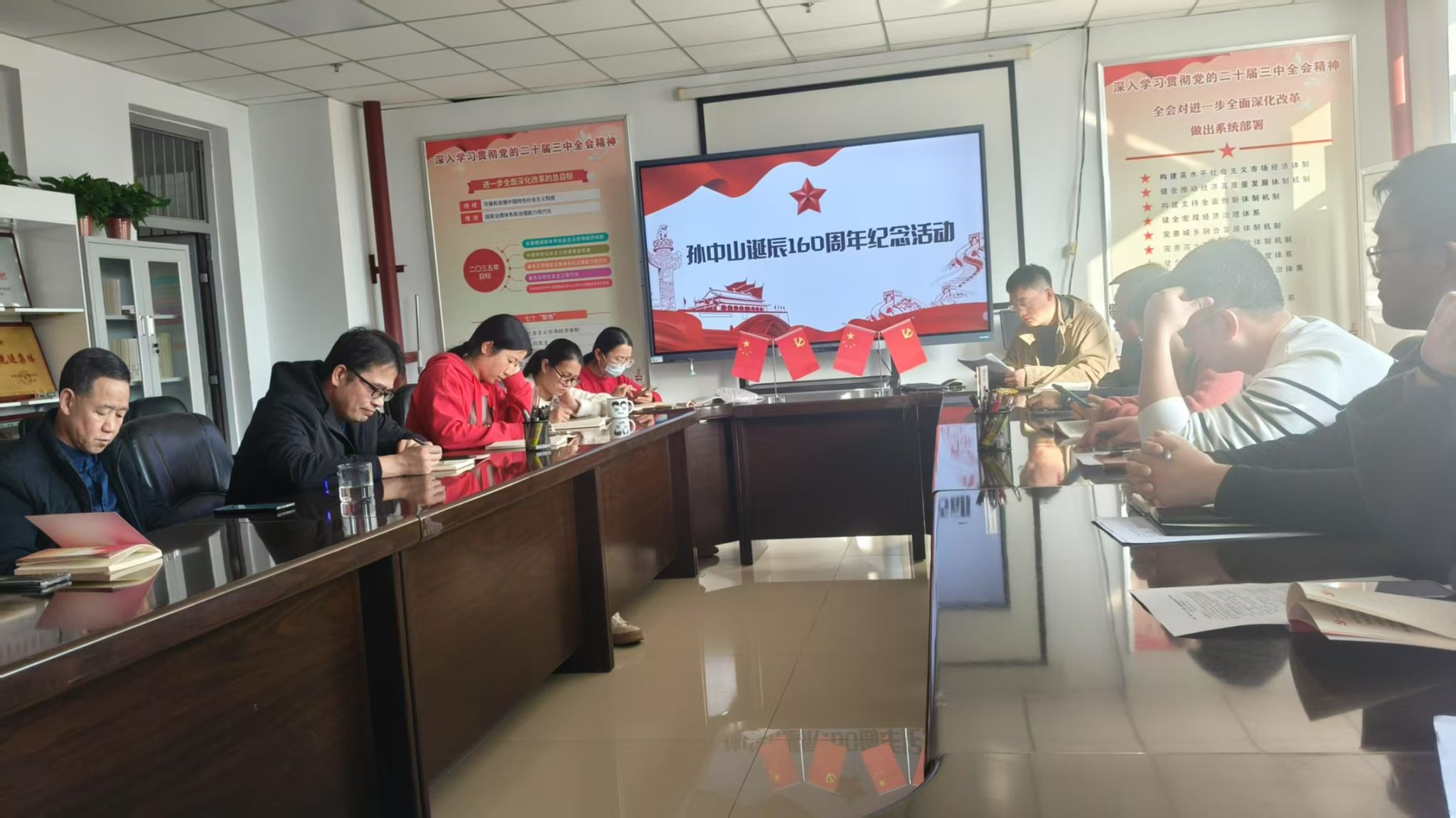 在孙中山诞辰160周年纪念环节,全体党员共同观看了纪录片《国父孙中山:从医者到革命先驱的传奇一生》和《孙中山先生》。影片生动展现了孙中山先生为民族独立、社会进步、人民幸福不懈奋斗的一生,激励全体党员继承和发扬革命精神,坚定理想信念,勇于担当作为。