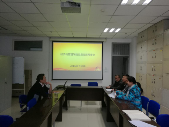 12月8日,经济与管理学院召开2016年下半年党员发展预审会, 会议由院党委书记石薛桥同志主持。院党委委员王文寅、屈有明、苏贵影出席会议。