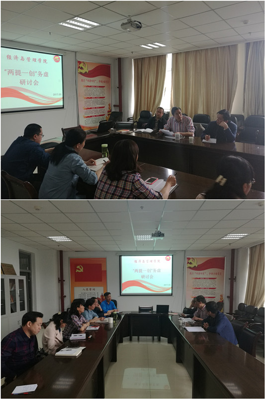 5月2日下午,经济与管理学院召开“两提一创”工作务虚会,全体院领导、各学科部主任和科级以上干部参加了会议。会议由党委书记石薛桥主持。