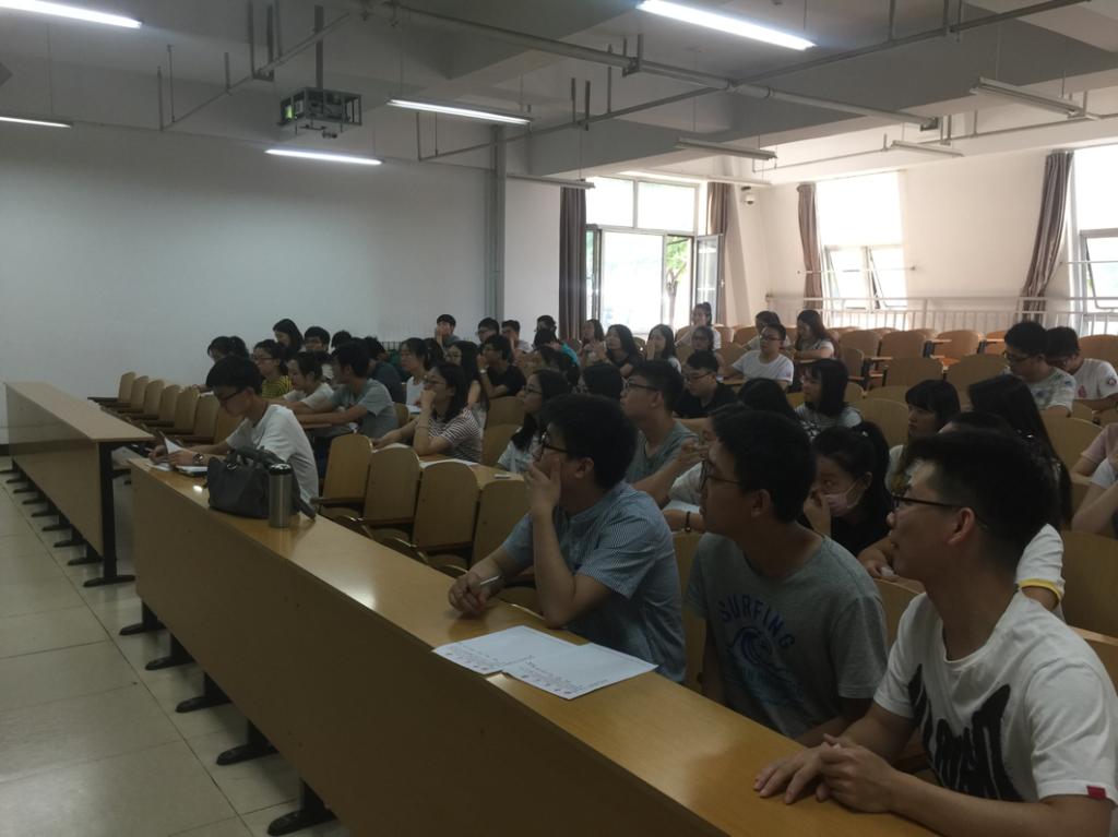 管理系学生党支部于2017年6月18日上午9:00点在15206教室召开本学期的党支部大会。会议由党支部书记杜苇老师主持召开,全体正式党员,预备党员共58人参加本次会议。