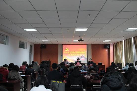 庄严的《国际歌》拉开了大会的帷幕。首先,院长赵公民同志宣读校党委《关于同意召开中国共产党中北大学经济与管理学院委员会党员大会的批复》;随后,院党委书记王琳同志受上一届党委委托,为大会作党委工作报告。报告全面总结了学院党委成效显著的三年,并从“科学发展,着力推进经管文化建设”、“加强内涵发展,建设创新经管”、“深入贯彻十九大精神,不断加强党的建设”等方面进行总结和部署。习近平总书记强调坚持党对一切工作的领导,经济与管理学院今后将更加深入贯彻习近平总书记系列重要讲话精神,深入贯彻十九大精神,凝心聚力、真抓实干,改革创新、不断超越,扎实推进学院“十三五”规划,为实现“百年百强”中北梦,实现文化经管、创新经管、和谐经管的转型跨越发展而努力!