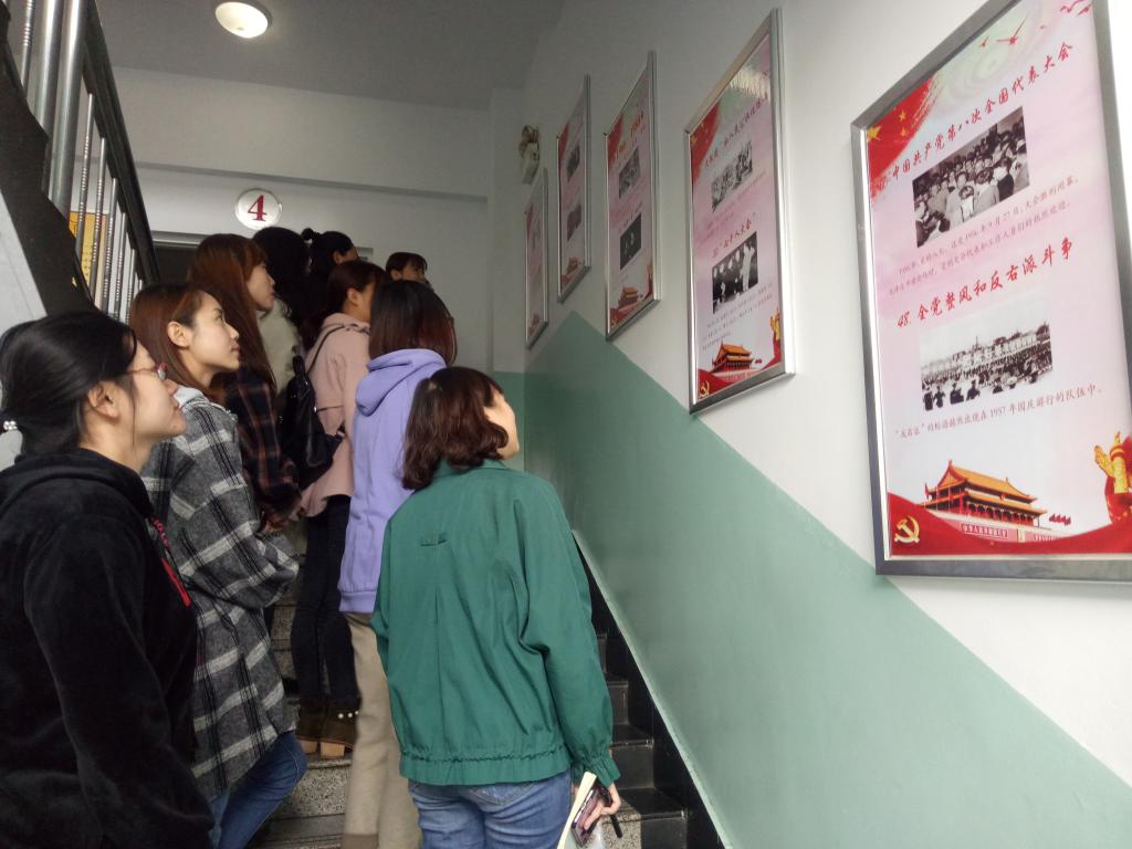 2018年10月13日上午,我院研究生党支部开展以“学党史•知党情•感党恩•跟党走”为主题的党日活动,组织支部党员参观学习怡丁苑1号公寓2-7层楼道党史展板,共有15名研究生党员参与此次活动。
