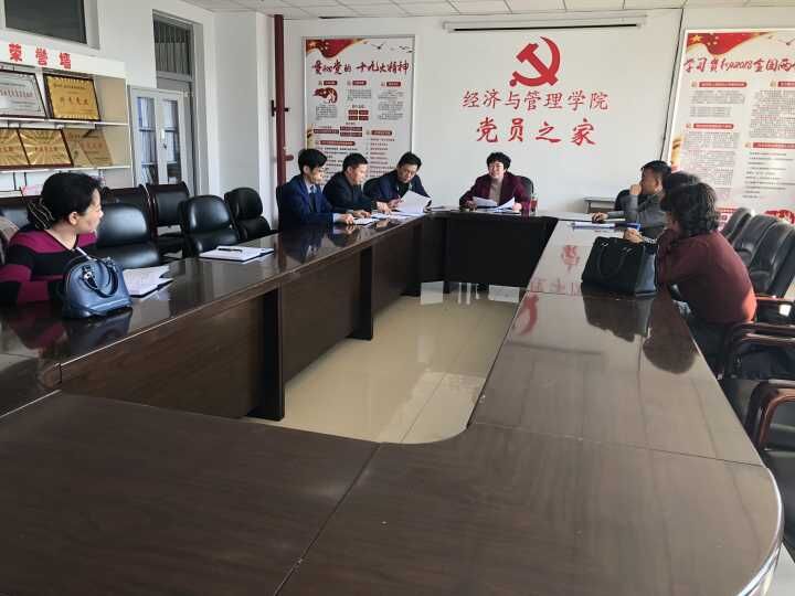 2018年10月16日上午10:00,经济与管理学院召开党委会,专题研讨教职工党支部规范化建设工作,会议由院党委书记王琳主持,院党委委员参加会议。