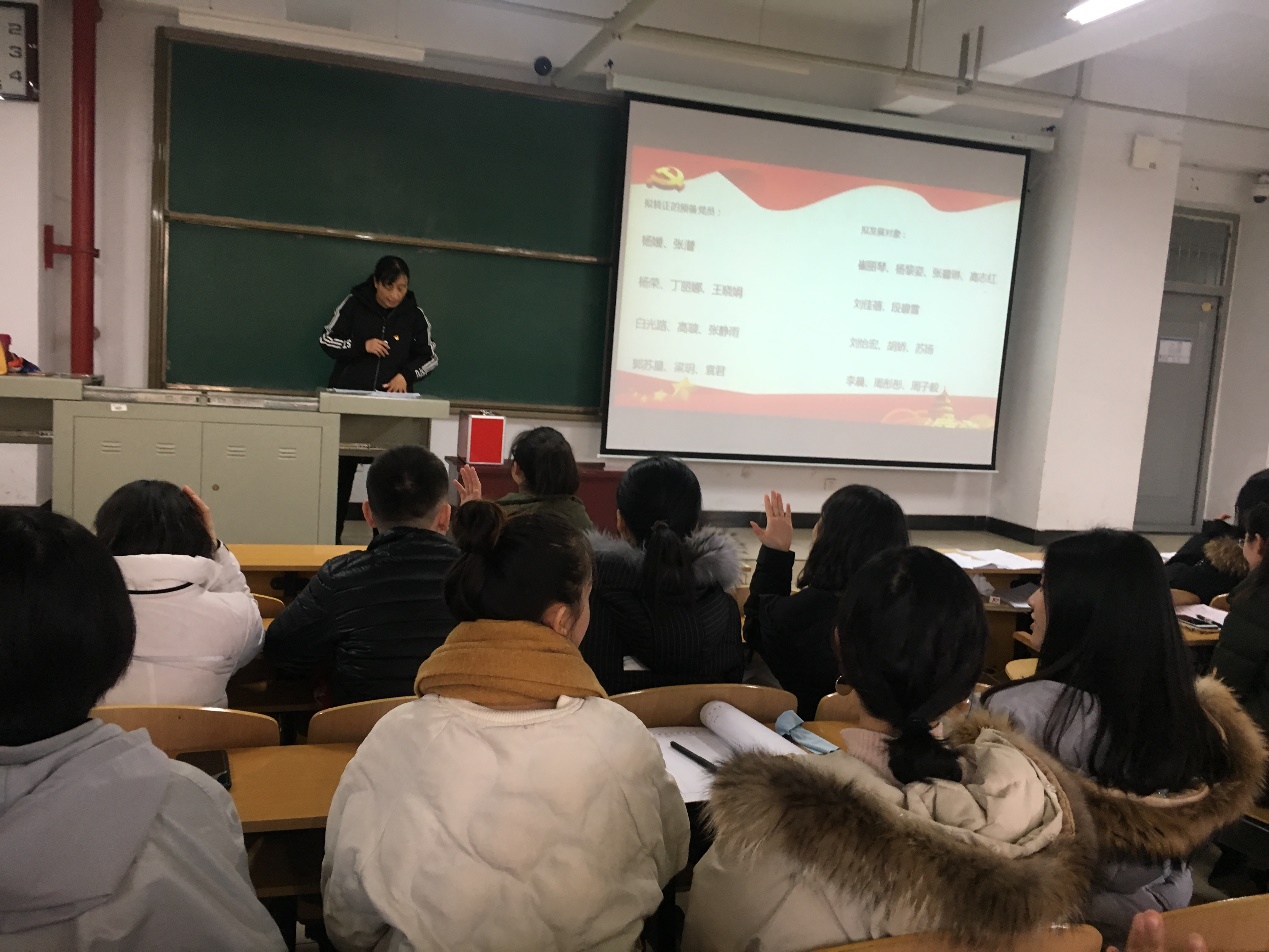 管理学学生党支部于2018年12月24日下午2:30在15号楼106召开下学期的支部大会。会议由管理学学生党支部书记李爱霞主持召开,全体正式党员、预备党员、发展对象共32人参加本次会议。