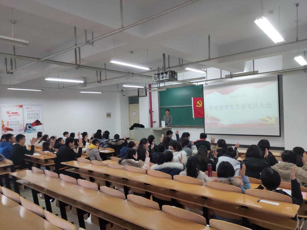 管理学学生党支部于2018年12月24日下午2:30在15号楼206召开下学期的支部大会。会议由管理学学生党支部书记那鹏飞主持召开,全体正式党员、预备党员、发展对象共45人参加本次会议。