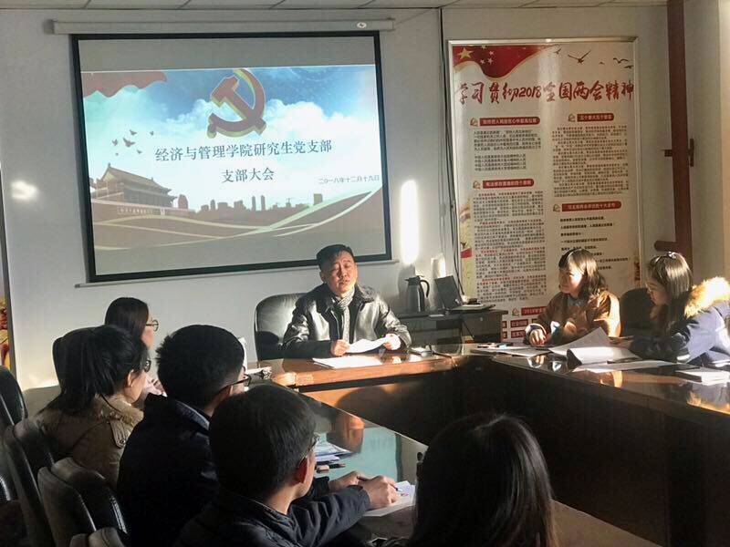 研究生党支部于2018年12月19日下午3点在15号楼308召开本学期的支部大会。会议由研究生党支部书记屈有明主持召开,支部正式党员、预备党员、重点发展对象共24人参加本次会议。
