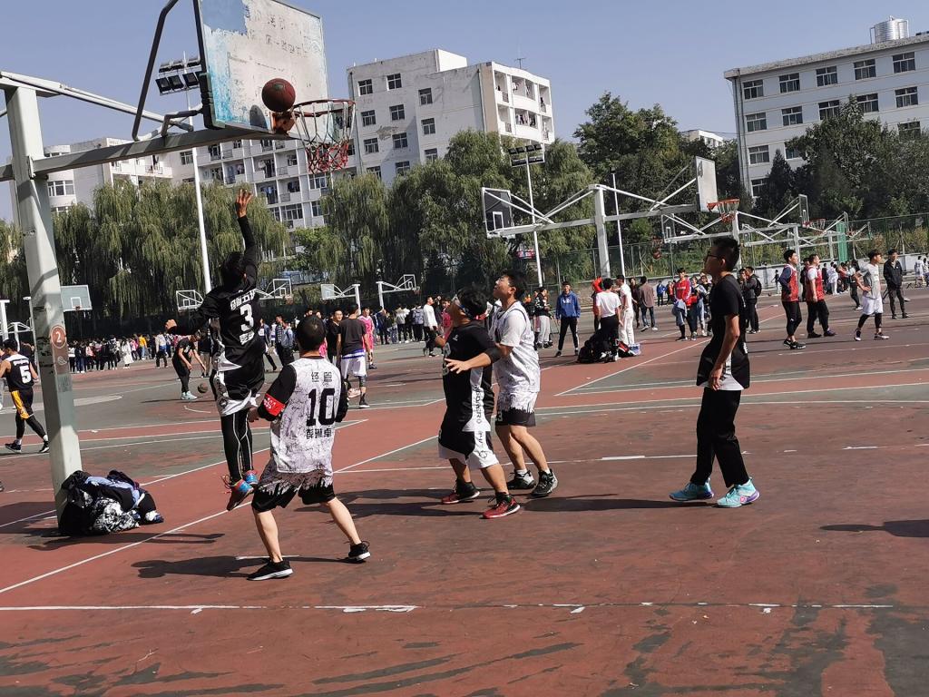 10月17日中午,淘汰赛正式拉开序幕。各晋级队伍早早地就到达了赛场,做着相应的准备。哨声一响,双方球员迅速进入状态。一方队友拿到篮球后迅速运球,左躲右闪,躲开了对方队员的阻拦,三大步跑到篮板前,一个跳跃,手腕一压,篮球应声人网!紧跟着另一方队员也不甘落后,拍着篮球,俩眼溜溜地转着,在寻找进攻的机会。突然加快步伐,左拐躲过两层防线,来到筐前,一个虎跳,球在空中划出一道弧线,最终不偏不倚地落入。场外,啦啦队呐喊助威,十分热闹。队员们一争一夺,展开一轮轮的投球。队员们出色的配合,激烈的争夺,使得球赛格外精彩!最终19090402,19090403,19090405,19090406班成功晋级半决赛。