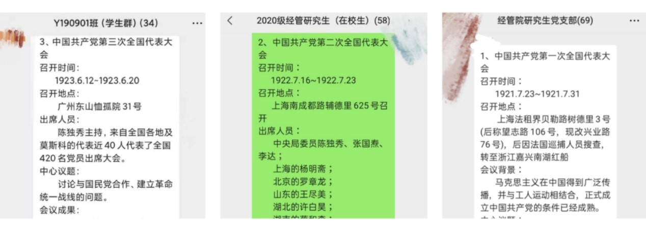 2021年,伟大的中国共产党迎来百年华诞。百年征程波澜壮阔,百年初心历久弥坚。为深入学习贯彻习近平总书记在党史学习教育动员大会上的重要讲话精神,自开学起,经济与管理学院研究生党支部就借助微信平台积极开展“全民学党史”活动,引导全体师生切实做到史明理、学史增信、学史崇德、学史力行,厚植知史爱党、知史爱国的精神素养。