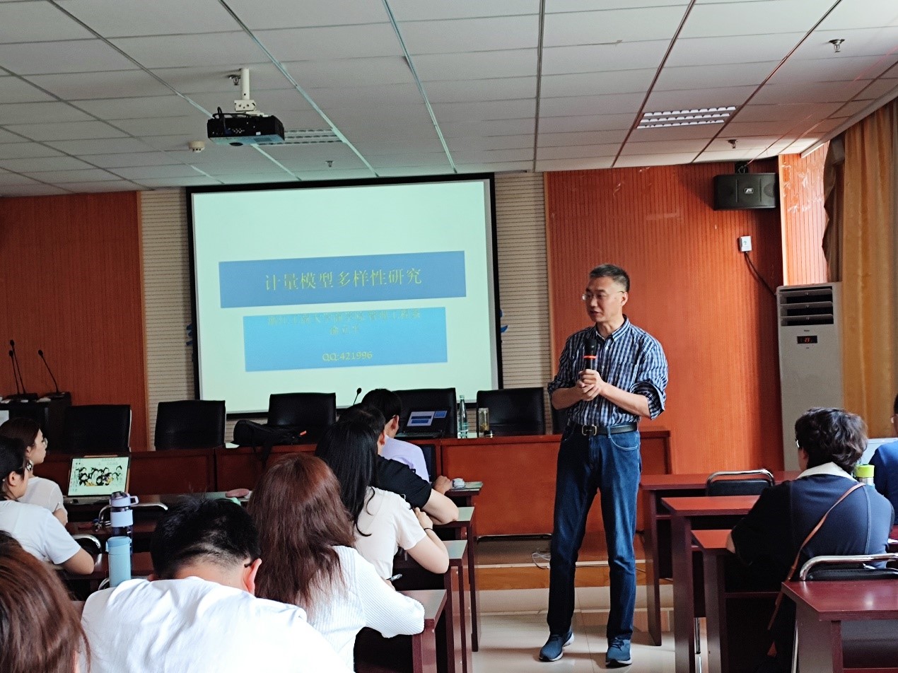 开营仪式后,首先由俞立平教授就社会科学研究工具的几点思考与同学们进行了交流,并且就精致回归主义与科学研究和计量模型多样性研究进行了指导。俞教授对计量技术的发展趋势、精致回归、传统回归的拓展等内容进行了深入的讲解,整场讲座内容丰富,精彩纷呈,对同学们的论文选题和写作非常具有指导意义。