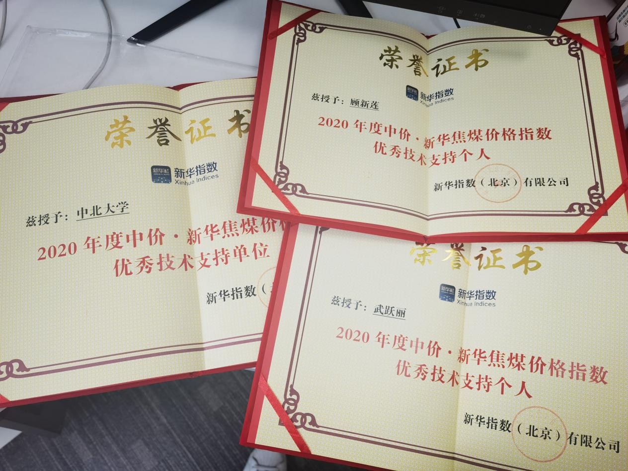 经济与管理学院价格指数研发团队(顾新莲、王文寅、武跃丽、赵公民、刘志坚、王长江、朱美峰、郭强、李晋红、燕志鹏)一直以来参与指数研发、测试、维护与延伸服务,为山西及全国煤焦炭行业发展提供技术支持,多年来得到了相关部门的认可。近日,新华指数(北京)有限公司在2020年度的总结评比中,授予中北大学“优秀技术支持单位”荣誉,授予顾新莲和武跃丽“优秀技术支持个人”荣誉。