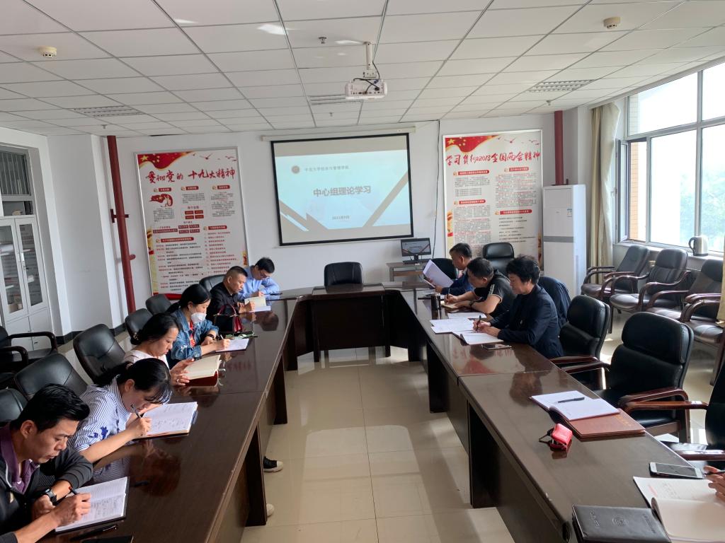 王琳书记传达了学校“读原著、学原文、悟原理”专题学习研讨方案(党史办〔2021〕19号)文件精神,对学院中心组的学习任务进行了安排和部署。