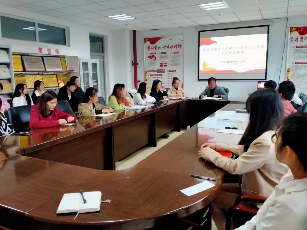 为了深入学习贯彻中国共产党中北大学第三次代表大会的会议精神,加强全体学生对会议精神的理解与认识。经济与管理学院研究生党支部于2021年10月14日下午在南楼308对本次会议精神进行了深入学习。本次会议由研究生党支部书记屈有明老师主持,全体研究生在校党员参会。