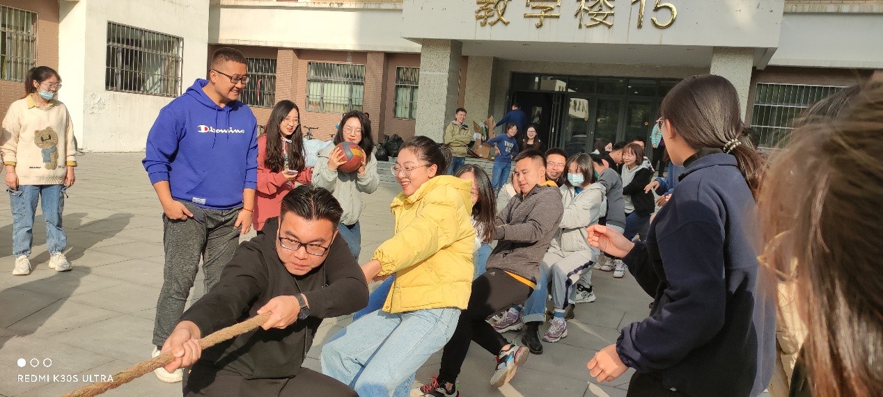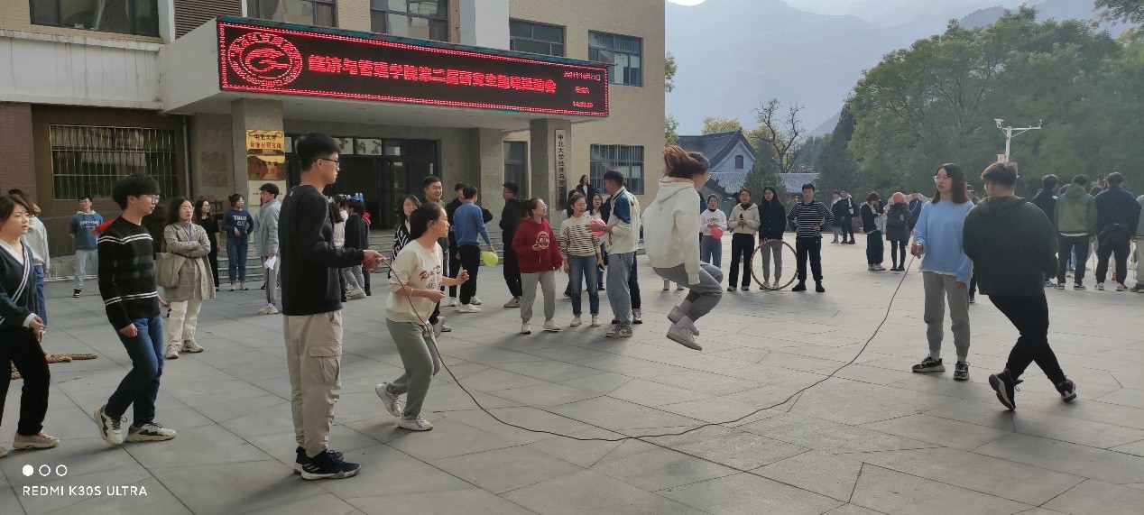 为丰富经济与管理学院研究生校园文化生活,提升团队协作能力,营造和谐向上的文化氛围,我院于2021年10月23日举办了经济与管理学院第二届研究生趣味运动会。与传统项目相比,趣味运动会将竞技与娱乐相结合,以放松身心、愉悦生活为主旨。运动会设置了男子篮球、团队跳大绳、呼啦圈竞走、拔河、同心鼓等趣味项目,参赛人员为经济与管理学院所有研究生。