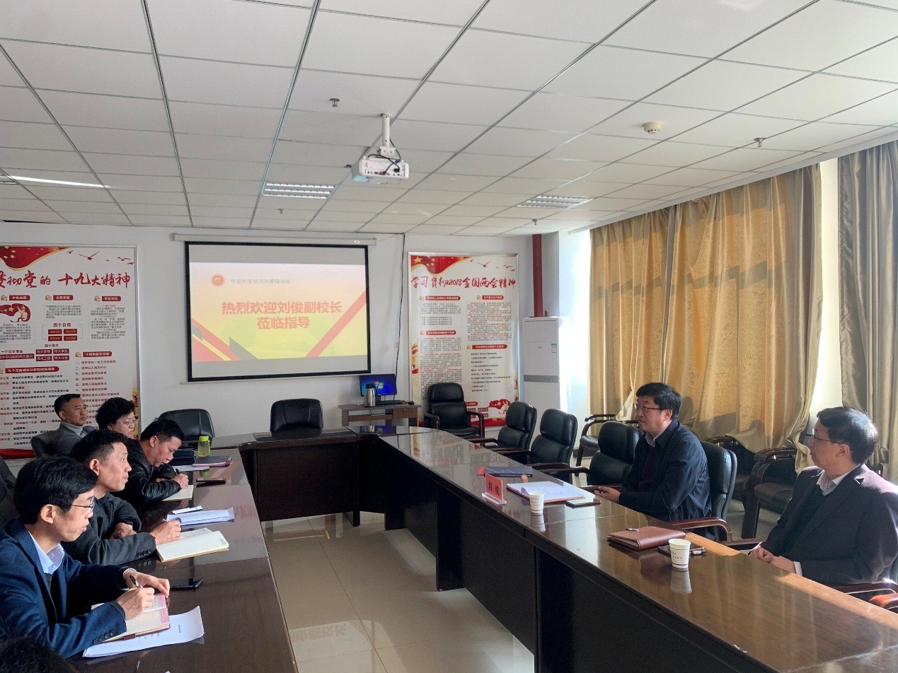 2021年11月4日上午,刘俊副校长深入经济与管理学院调研指导工作,研究生院院长胡双启,经济与管理学院领导班子、系主任、科室负责人等参加了调研座谈会,会议由院长赵公民主持。