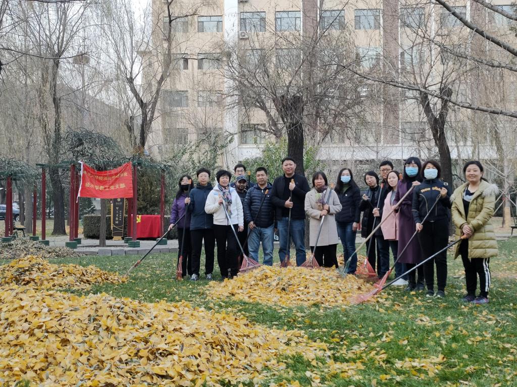 清冷初冬,残叶零落。经济与管理学院经济学教工党支部教工党员联合少数民族留学生,于2021年11月16日下午4:30在逸夫楼南面银杏林开展了“清扫落叶、我为群众办实事”的主题党日活动。