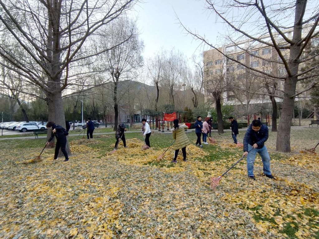 秋尽冬来,凄风瑟瑟中,经济与管理学院经济学教工党支部师生在王琳书记、周娟美老师的带领下,认真清扫了银杏林各处落叶。师生们在劳动中团结互助,不怕脏、不怕累,既美化了校园环境,又为中北大学师生们创造了良好的学习环境;既密切了教职工的联系,又为萧瑟的初冬校园增添了一道亮丽的风景。