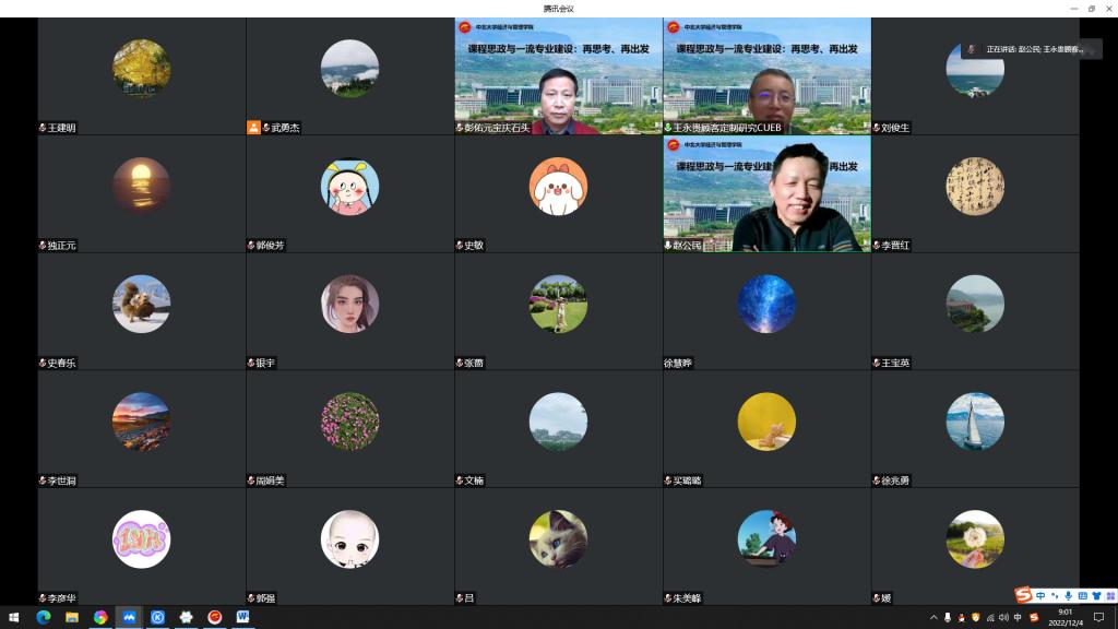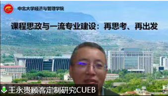 2022年12月4日上午9点,经济与管理学院全体教师召开线上腾讯会议,本次会议特邀首都经济贸易大学副校长,国家杰青,教育部特聘教授王永贵做“课程思政与一流专业建设:再思考再出发”讲座,会议由学院院长赵公民教授主持。