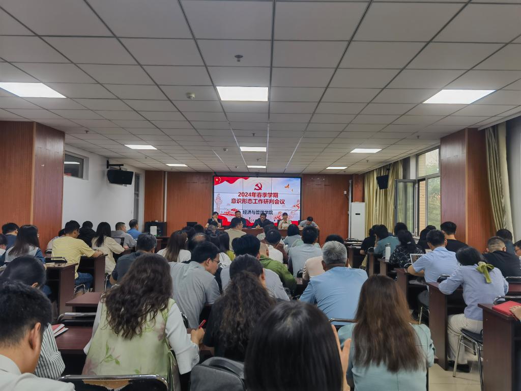 为深入学习贯彻党的二十大精神,全面落实学校关于加强和改进新时代师德师风建设的相关工作要求,进一步加强全院教师的师德师风建设,营造学院风清气正的良好教书育人环境。同时,也对学院意识形态工作进行科学研判,进一步压实意识形态工作责任制。经济与管理学院于5月14日下午,在学院301会议室召开学院师德师风专题教育大会暨意识形态工作研判会议,会议由学院党委书记杜苇同志主持,学院全体教师参加了本次会议。