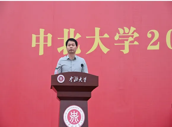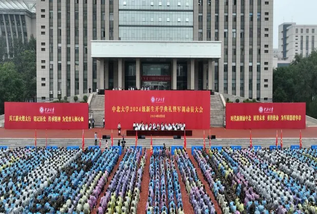 2024年9月9日上午,中北大学2024级新生开学典礼暨军训动员大会在行知广场隆重举行。全体在校校领导出席。中北大学党委书记张晓永出席并为新生代表佩戴校徽。校党委副书记、校长陈钱致欢迎辞。杰出校友代表、2004级经济管理学院毕业生、东方空间联合创始人魏凯出席。新生家长代表、各职能部门和学院负责人、新生班主任、军训教官及全体2024级新生现场参加典礼。典礼由中北大学副校长尹建平主持。万余名教师、新生家长、校友等线上观看直播。