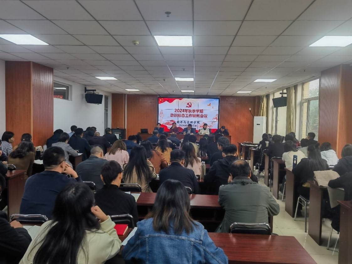 为深入学习贯彻党的二十届三中全会精神,全面落实学校关于意识形态及网络安全与信息化相关工作要求,进一步压紧压实意识形态工作责任制度,2024年10月15日下午,经济与管理学院在逸夫楼301会议室召开了2024年秋季学期意识形态工作研判会议,院长赵公民,院党委副书记、副院长屈有明,副院长彭佑元,副院长张克勇出席,学院全体教师参加了本次会议,会议由学院党委书记杜苇主持。