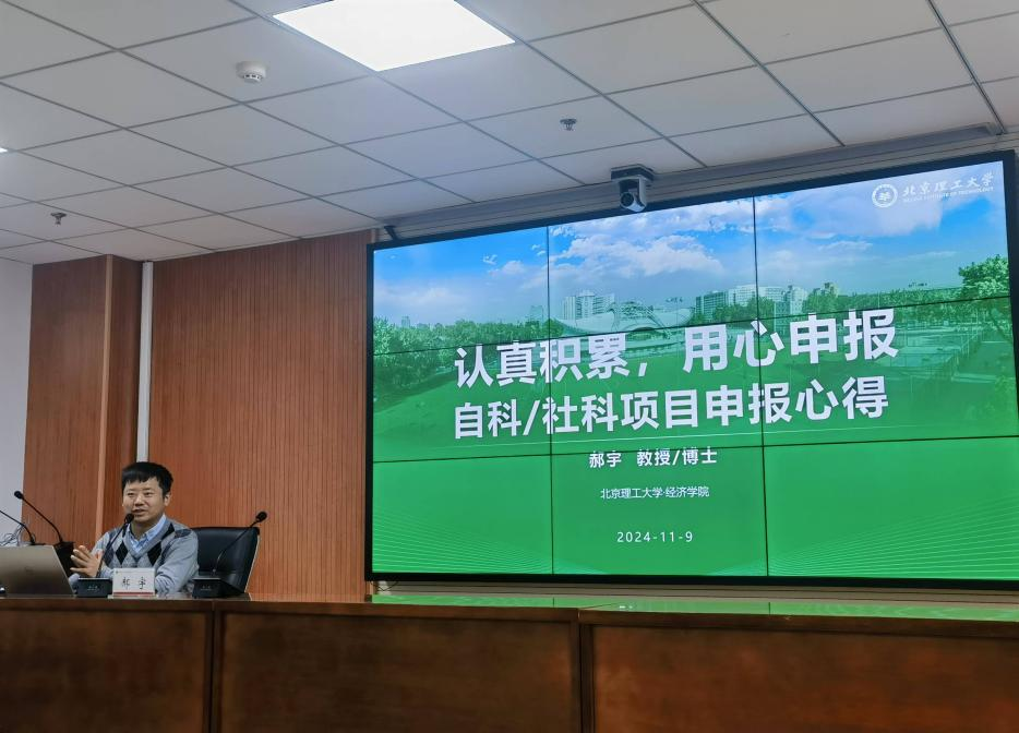 为推动我院2025年度国家基金项目申报工作,助力经济与管理学院学科建设。11月9日,经济与管理学院国家基金项目申报动员暨专家辅导会在逸夫楼301室举行。会议由院长赵公民教授主持,副院长张克勇教授出席并作申报动员报告。本次会议特邀北京理工大学郝宇教授作申报辅导,经济与管理学院教师及部分硕士研究生参会。